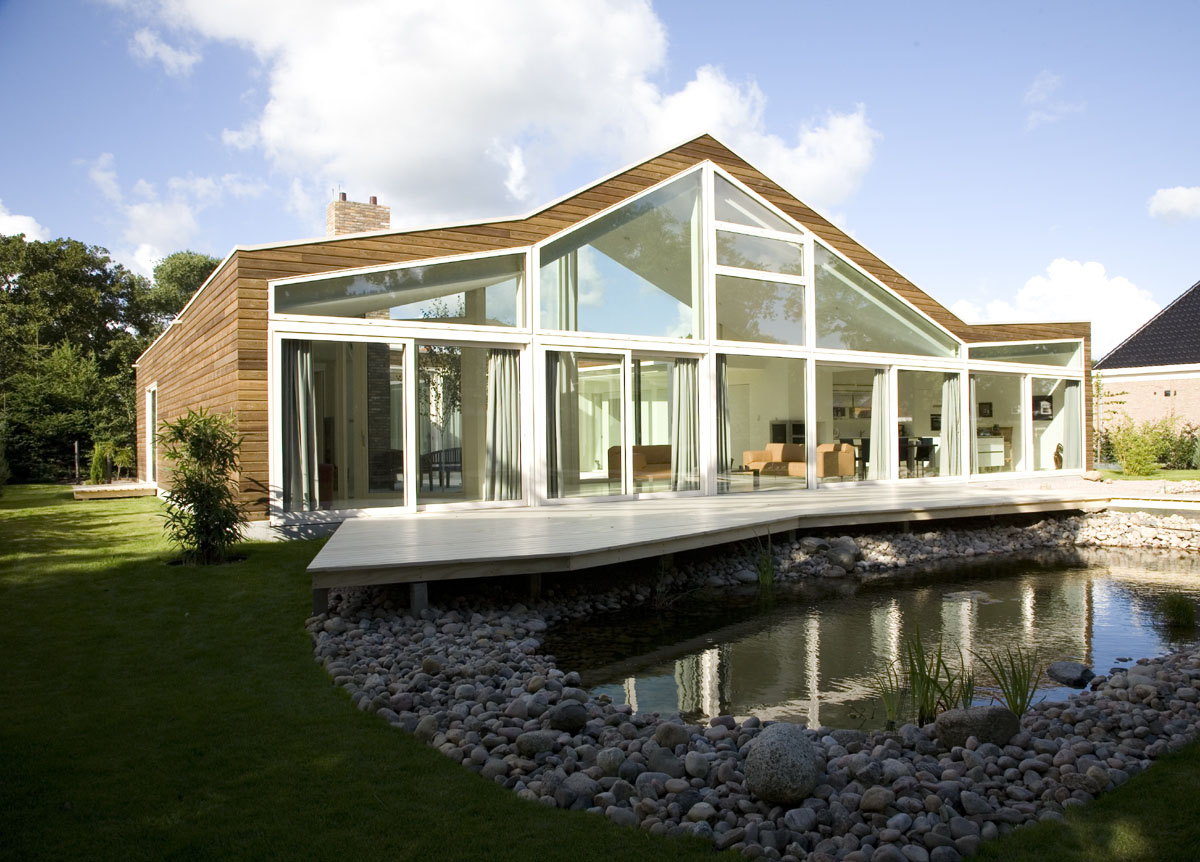 На воде озера на равнине недалеко от Лехлейд-он-Темз, недалеко от Оксфорда, стоит дом из стекла и стали на сваях, сделанный Mecanoo.Необычно встретить дом, построенный на воде в 21 веке, но этот был построен как палафит, прямо над водой, с бетонными столбами и микрополюсами.Его два уровня над землей и фасад из стекла и стали бросают вызов суровому британскому климату, пропуская как можно больше солнца. Заказчик хотел, чтобы дом через террасу на уровне воды вступал в диалог с послушным озером.
