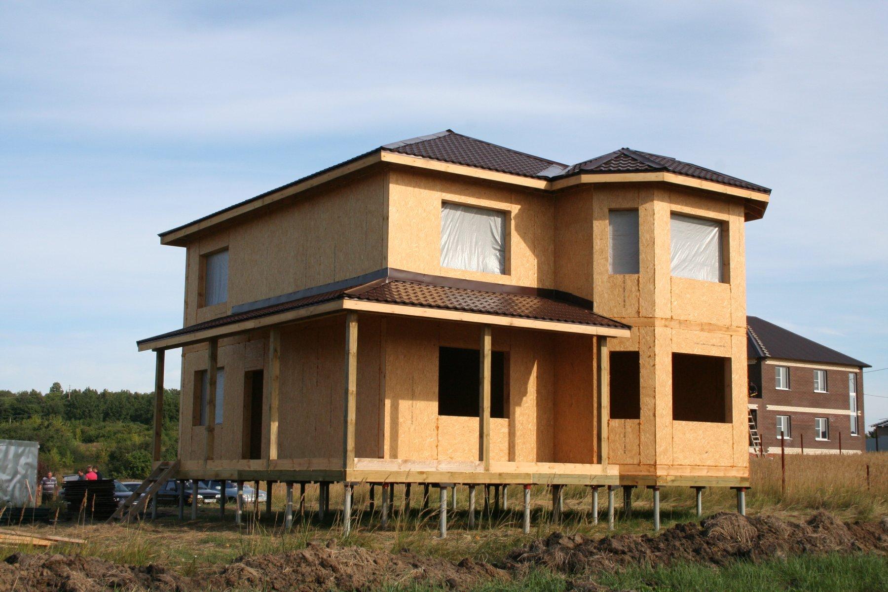 - Каркасные сооружения, т. е. каркасно-панельная технология. В этом случае на основание ставится каркас из деревянных брусьев, металлических профилей или железобетонных колонн. Далее он облицовывается панелями.