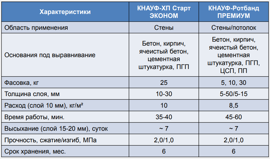 - Knauf. Применяют для внутренних работ на сухих плоскостях.