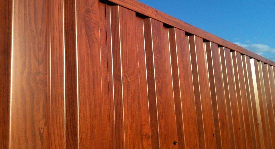 - Чтобы прикрутить профлисты друг к другу и к лаге используются заклепки или специальные саморезы по металлу. Одна из крайних волн листа является накрывной. Первый лист монтируется таким образом, чтобы накрывная волна последующего закрыла волну предыдущего, а не наоборот. Чтобы по окончанию монтажа возле ворот/калитки не отказался обрезок листа, монтаж нужно начинать с этих элементов (если забор сплошной).