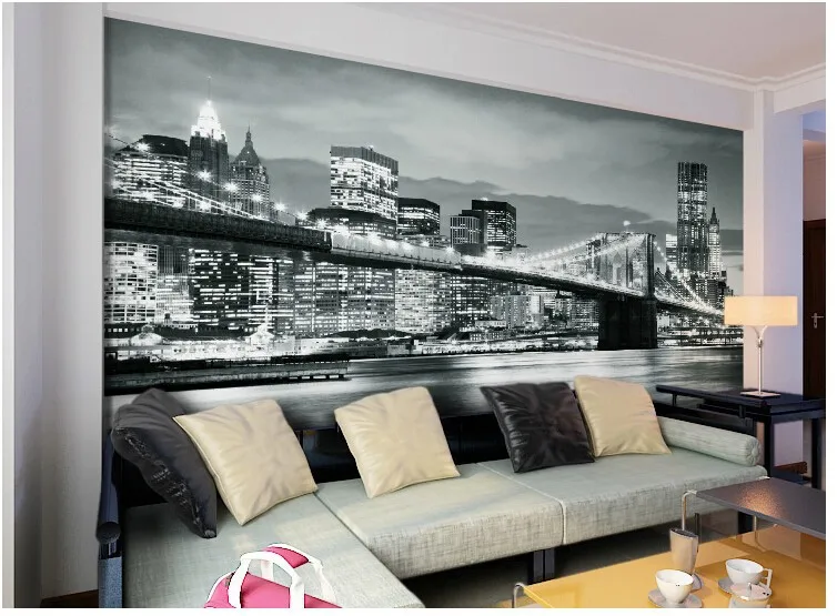 Развитие технологий идет большими шагами, и все чаще можно услышать про 3D-обои. Этот рисунок, нанесенный по определенной технологии, поражает своей реалистичностью, а эффект присутствия максимально приближен к реальности. Изображение города на таких обоях не только будет удивлять гостей, но и создаст иллюзию пространства. Использовать их лучше для гостиной, причем это должно быть большое просторное помещение, иначе 3D-эффект будет незаметен.