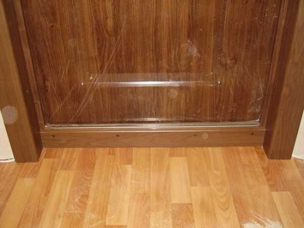 Кроме того, нужно обратить внимание на плотность прилегания низа дверного полотна. Следует не допускать слишком больших щелей между порогом и дверью.