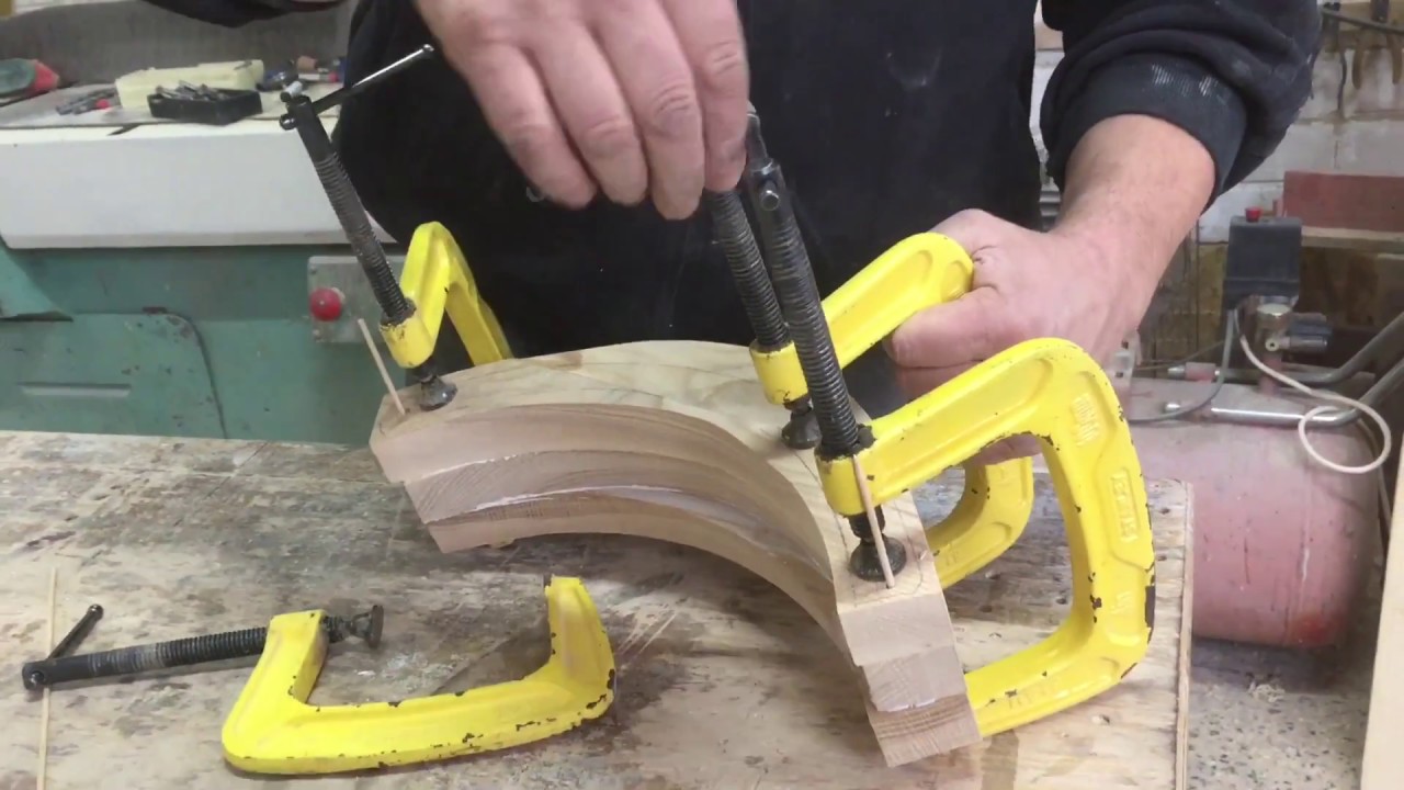 Сами листы фиксируем на шаблоне с помощью струбцин, и листы прибиваются друг к другу сапожными гвоздиками.